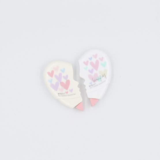 Este é um corretor 2 em 1 em forma de coração! Cada corretor é uma das partes do coração, por isso, podes partilhá-lo com um amigo, e corrigir os teus erros sempre que necessário.